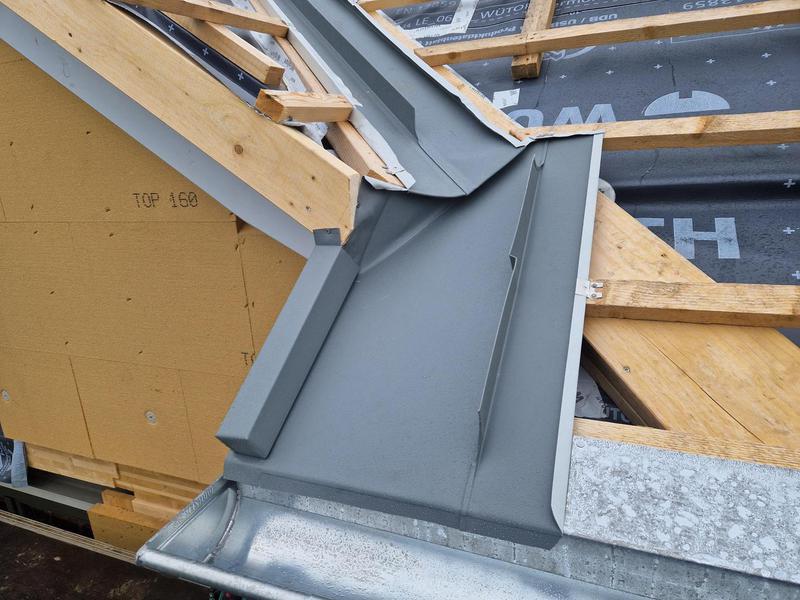 Verwahrungen sind die komplexesten Bauteile in einem Dach. Je nach Materialeigenschaften können Verwahrungen gelötet, geschweißt, gefalzt oder gefaltet sein.