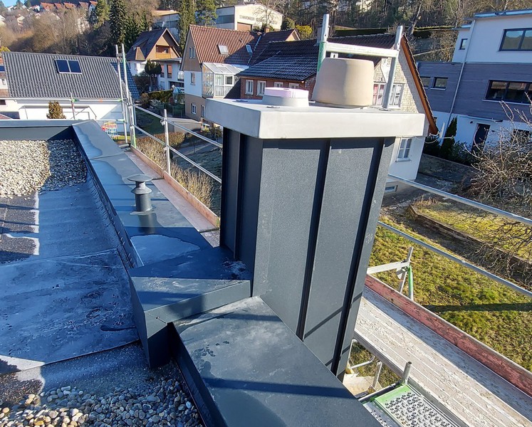 Verwahrungen sind Wassarableitsysteme aus mehreren zusammengefügten Blechbauteilen um Dachdurchdringungen vor Feuchteeintritt zu schützen.
